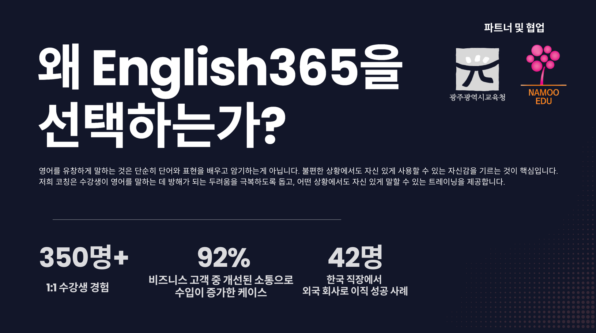 자신있게 영어로 소통하며 능력을 펼치는 자신을 상상해보세요!